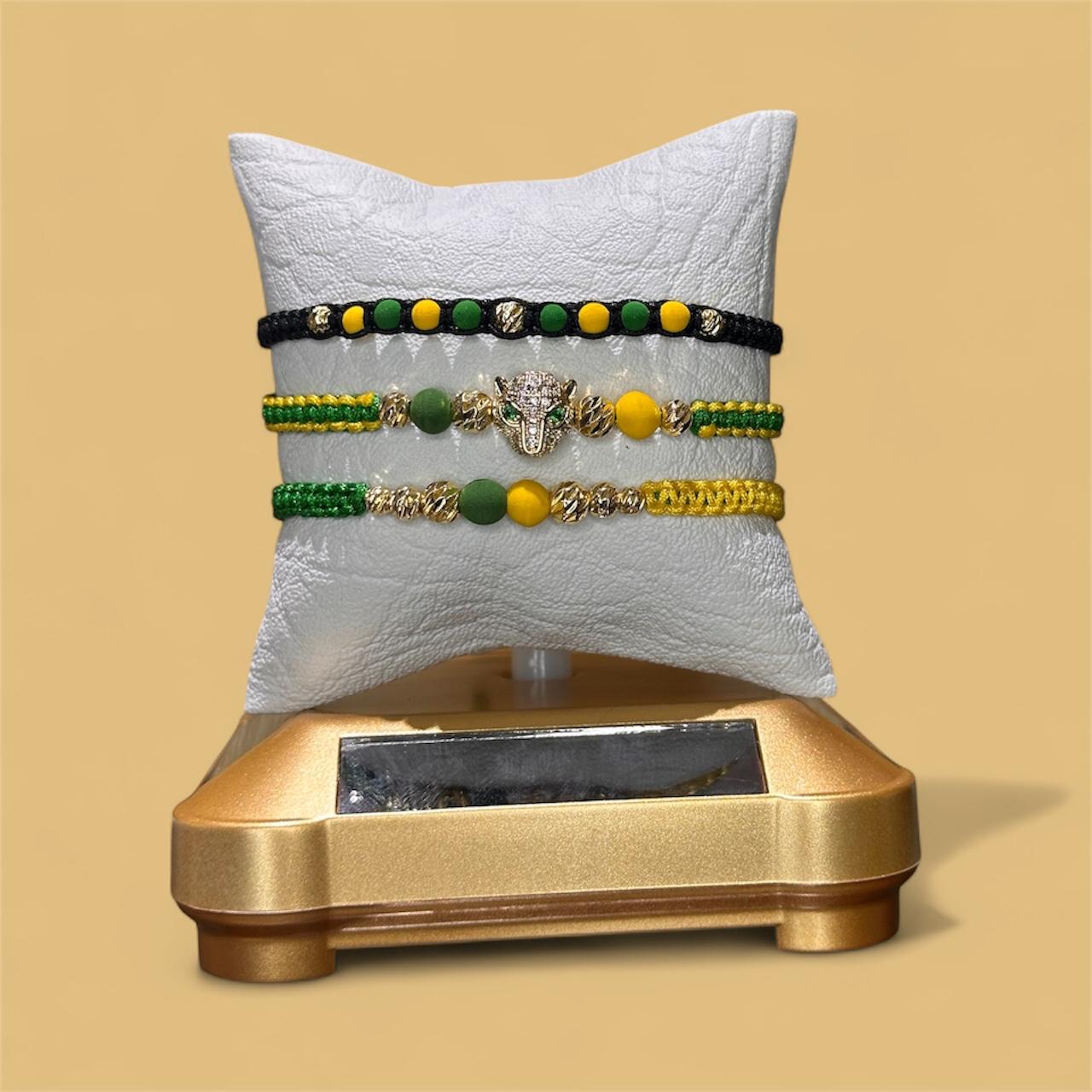 Demuestra tu pasión Leopardiana con este combo exclusivo de 3 manillas edición Atlético Bucaramanga 💛💚🐆